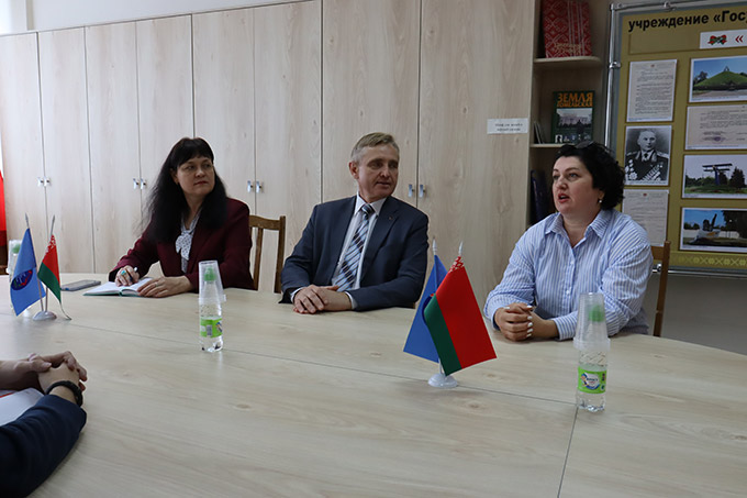 | 1. На сустрэчы з моладдзю архіва (злева направа): намеснік дырэктара архіва Зоя Аляксандравіч, старшыня Прафсаюза работнікаў дзяржустаноў Аляксандр Матарас, старшыня першаснай прафсаюзнай арганізацыі архіва Святлана Прымакова |