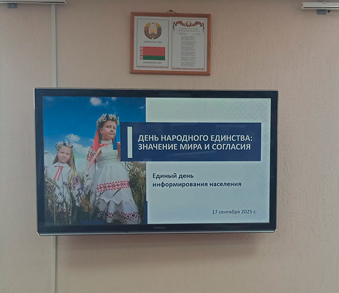 У рамках тэматыкі Адзіных дзён інфармавання на III квартал 2025 г. разгледжана тэма «Дзень народнага адзінства: значэнне міру і згоды». Намеснік дырэктара НГА Беларусі Наталія Булойчык распавяла аб карэнных сацыяльна-эканамічных пераўтварэннях у выніку ўз’яднання Заходняй Беларусі з БССР і дасягненнях адзінай і незалежнай Беларусі на сучасным этапе.