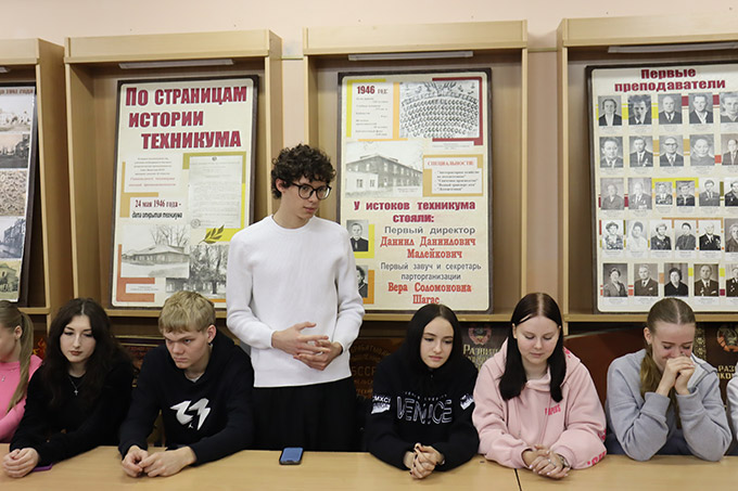 Навучэнцам каледжа быў прадэманстраваны дакументальны матэрыял, падрыхтаваны Беларускім дзяржаўным архівам кінафотафонадакументаў «Уз’яднанне беларускага народа».