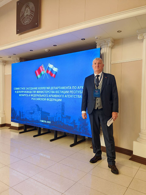 1-2 кастрычніка 2025 г. дырэктар НГА Беларусі Міхаіл Глушакоў прыняў удзел у сумесным пасяджэнні калегій Дэпартамента па архівах і справаводству Міністэрства юстыцыі Рэспублікі Беларусь і Федэральнага архіўнага агенцтва, а таксама ў прафесійнай сустрэчы архівістаў Расіі і Беларусі, прысвечанай пытанням арганізацыі прадстаўлення і выкарыстання лічбавых копій архіўных дакументаў у глабальнай камп’ютарнай сетцы Інтэрнэт. Мерапрыемствы прайшлі ў гг.Гомель і Рэчыца. У ходзе пасяджэння калегій былі падведзены вынікі выканання ў 2025 годзе мерапрыемстваў, прадугледжаных Планам сумесных дзеянняў Федэральнага архіўнага агенцтва і Дэпартамента па архівах і справаводству Міністэрства юстыцыі Рэспублікі Беларусь на 2023-2025 гг., і адобраны праект Плана сумесных дзеянняў на 2026-2028 гг. Для ўдзельнікаў мерапрыемства праведзена экскурсія па ўстанове «Дзяржаўны архіў Гомельскай вобласці».