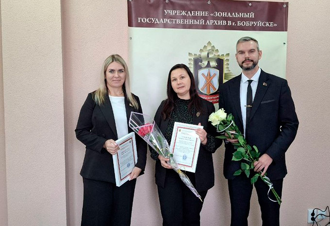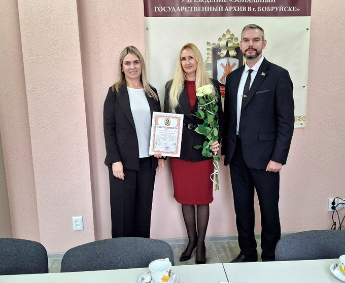 У Дзень архівіста першы намеснік начальніка галоўнага ўпраўлення юстыцыі Магілёўскага аблвыканкама Фралоў Сяргей Аляксандравіч, начальнік упраўлення абавязковай юрыдычнай экспертызы, каардынацыі дзейнасці службаў «адно акно», па архівах і справаводстве Галоўнага ўпраўлення юстыцыі Магілёўскага аблвыканкама Клінцова Юлія Станіславаўна наведалі ўстанову «Занальны дзяржаўны архіў у г.Бабруйску», уручылі Падзяку Дэпартамента па архівах і справаводству Міністэрства юстыцыі Рэспублікі Беларусь загадчыку аддзела забеспячэння захаванасці і выкарыстання дакументаў і фондаў Кузняцовай Кацярыне Уладзіміраўне, начальніку бюро па разліках з персаналам бюро па разліках з персаналам у ААТ «Чырвоны харчавік» Каюшнікавай Аксане Віктараўне і Падзяка начальніка ВУ «Выхаваўчая калонія №2» упраўлення ДВП МУС Рэспублікі Беларусь дырэктару ўстановы «Занальны дзяржаўны архіў у г.Бабруйску» Заяц Алене Дзмітрыеўне.