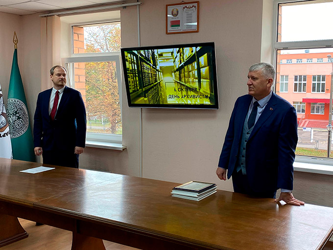 6 кастрычніка 2025 г. Нацыянальны гістарычны архіў Беларусі адзначыў Дзень архівіста. З гэтай нагоды адбыўся ўрачысты сход працоўнага калектыву, на якім дырэктар архіва Міхаіл Глушакоў і намеснік дырэктара Сяргей Рындзін сардэчна павіншавалі работнікаў архіва з прафесійным святам. На сходзе за добрасумленную працу шэраг работнікаў адзначаны Ганаровымі граматамі і Падзякамі Дэпартмента па архівах і справаводству і НГА Беларусі.