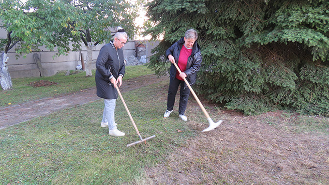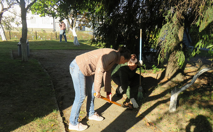 | 1-2. Супрацоўнікі Дзяржаўнага архіва Гродзенскай вобласці добраўпарадкоўваюць тэрыторыю каля будынка архіва |