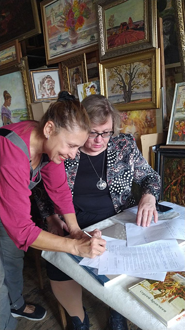 1. М.І.Пышынская і А.Б.Аракчэева-Кіпхардт падчас перадачы сямейнага архіва