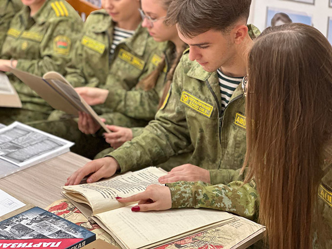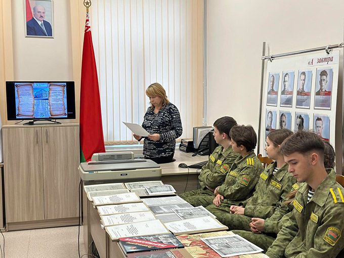 Увазе навучэнцаў была прадстаўлена выстава дакументаў «А заўтра была Перамога..»., якая экспануецца ў чытальнай зале архіва, а таксама арганізаваны паказ дакументальнага фільма «Гісторыя Вялікай Перамогі», падрыхтаванага да 80-годдзя Перамогі савецкага народа ў Вялікай Айчыннай вайне Беларускім дзяржаўным архівам кінафотафонадакументаў.