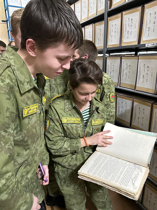 Навучэнцаў азнаёмілі з дакументальнымі матэрыяламі аб дзейнасці падпольных груп і партызанскіх брыгад, якія захоўваюцца ў архіве: аб баявым і лікавым складзе партызанскіх атрадаў і брыгад, з асабістымі справамі Герояў Савецкага Саюза, таксама хлопцы атрымалі магчымасць азнаёміцца з сапраўднымі дакументамі, якія змяшчаюць успаміны ўдзельнікаў баёў за вызваленне Гомельскай вобласці ад нямецка-фашысцкіх захопнікаў.