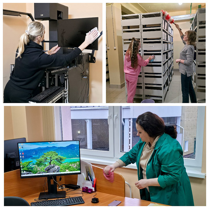 | 4.Супрацоўнікі НГАБ ў г. Гродна падчас прывядзення ў парадак сваіх працоўных месцаў. |