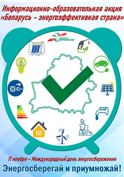 З 10 па 20 лістапада 2025 года Дэпартамент па энергаэфектыўнасці праводзіць рэспубліканскую інфармацыйна-адукацыйную акцыю «Беларусь – энергаэфектыўная краіна». Яна прымеркавана да Міжнароднага дня энергазберажэння (11 лістапада).