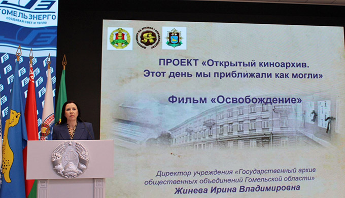 Дырэктар архіва прадставіла ўдзельнікам фільм «Вызваленне», падрыхтаваны установай «Беларускі дзяржаўны архіў кінафотафонадакументаў» у рамках праекта «Адкрыты кінаархіў. Гэты дзень мы набліжалі, як маглі». Кадры хронікі, якія ажылі на экране, перанеслі прысутных у суровыя гады вайны, дазволіўшы адчуць увесь драматызм і гераізм барацьбы за вызваленне Гомеля. Гэта быў не проста прагляд, а апусканне ў мінулае, магчымасць дакрануцца да подзвігу тых, хто цаной неверагодных намаганняў вярнуў мірнае неба над родным горадам.