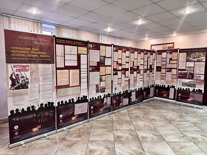 Таксама для ўсіх прысутных быў прадстаўлены выставачны праект «Гомельскі полк народнага апалчэння: гісторыя, подзвіг, памяць», які прымеркаваны да 80-годдзя вызвалення Гомеля ад нямецка-фашысцкіх захопнікаў і распавядае пра гісторыю стварэння, дзейнасці, арганізатараў і ўдзельнікаў Гомельскага палка народнага апалчэння.