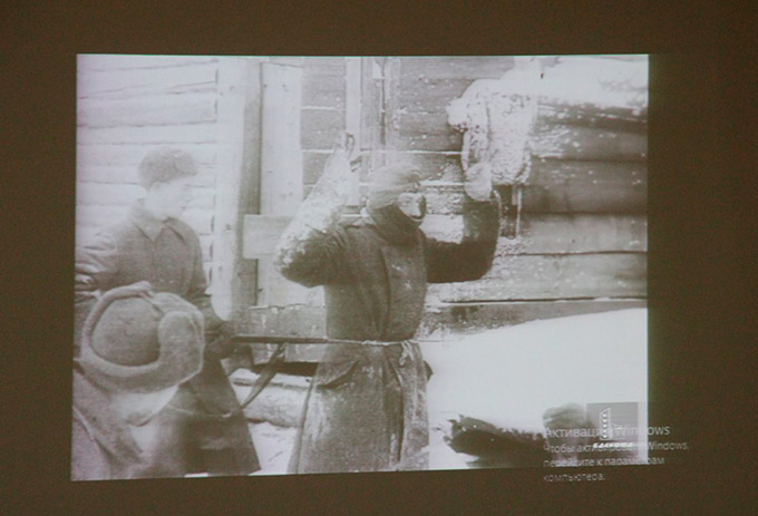 На фота: Вядучы архівіст установы «Занальны дзяржаўны архіў у г.Крычаве» Вікторыя Кандраценка падчас правядзення тэматычнага мерапрыемства «Дзень памяці генацыду».