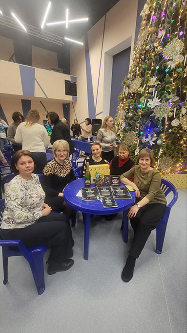 На фота: Члены каманды «Архіўныя кадры» ў фінале Х чэмпіянату па інтэлектуальных гульнях сярод прадпрыемстваў і ўстаноў Дзяржынскага раёна, 12 снежня 2025 г.