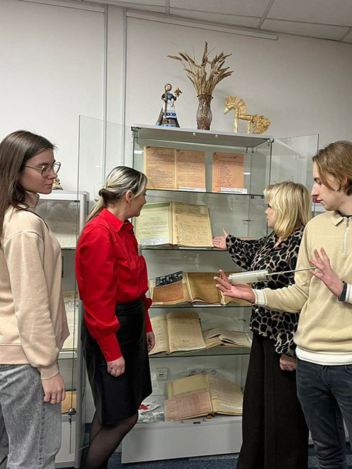 | 2. Загадчык аддзела НАРБ М.А.Старасценка знаёміць з дакументальнай выставай да 105-годдзя з дня стварэння Наркамата аховы здароўя БССР |