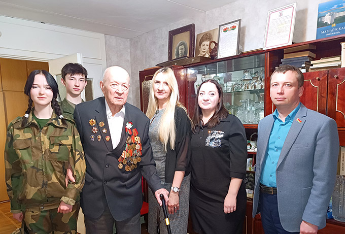 Напярэдадні Новага года госці ад усёй душы пажадалі дарагому ветэрану, моцнага здароўя, душэўнага цяпла, увагі блізкіх і мірнага неба над галавой. Нізкі паклон і вечная падзяка!