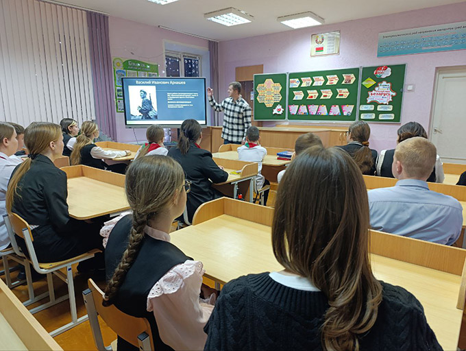 На заканчэнне ўрока дзецям быў прадэманстраваны фільм «Гісторыя Вялікай Перамогі», навучэнцы падзякавалі работнікам за цікавае мерапрыемства.