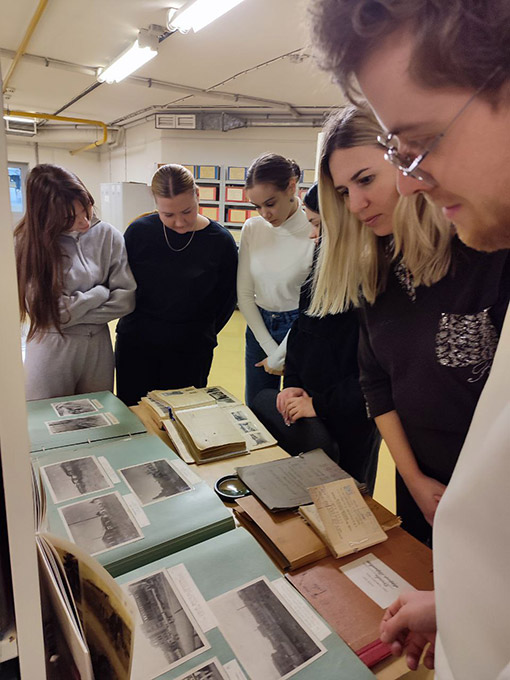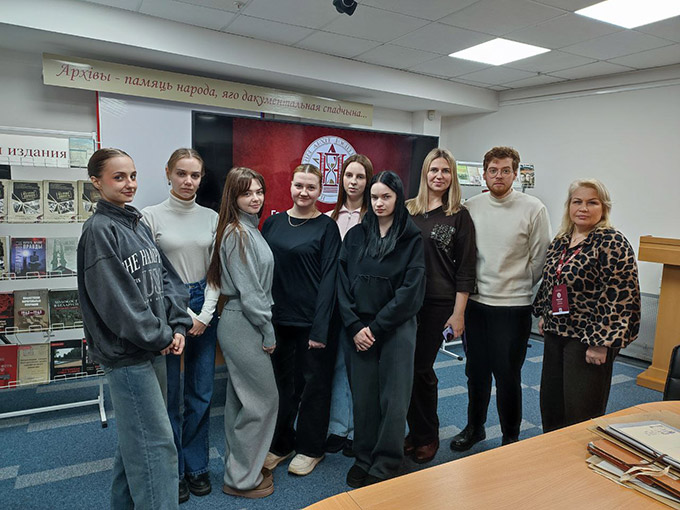 Загадчык аддзела выкарыстання дакументаў і інфармацыі НАРБ М.А.Старасценка правяла экскурсію па архіве, распавяла аб яго гісторыі, складзе і асаблівасцях захоўвання дакументаў, працы ў галіне публікацыйнай і выставачнай дзейнасці.