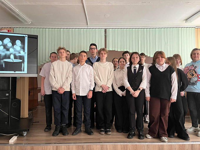 2. Вучні ўстановы адукацыі падчас правядзення ўрока памяці.