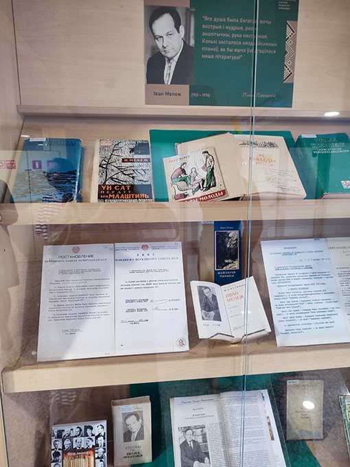 Цэнтральнае месца ў экспазіцыі займаюць кнігі, якія апавядаюць пра каханне, чалавечнасці, гонар і Айчыну. Сярод экспанатаў можна ўбачыць рэдкія прыжыццёвыя выданні такіх шэдэўраў беларускай літаратуры, як «Глыбокая плынь», «Трывожнае шчасце, «Сэрца на далоні», «Гандлярка і паэт», «Палеская хроніка», «Мінскі напрамак» і многія іншыя, з густам аформленыя і ілюстраваныя знакамітымі мастакамі. Найкаштоўнейшымі экспанатамі з’яўляюцца кнігі з аўтографамі творцаў.
