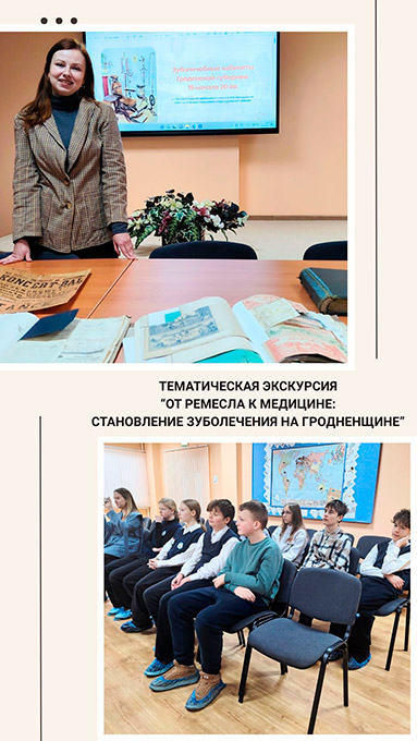 10 лютага 2026 года ў Нацыянальным гістарычным архіве Беларусі ў г.Гродна была праведзена тэматычная экскурсія «Ад рамяства да медыцыны: станаўленне зубалячэння на Гродзеншчыне», прымеркаваная да Дня стаматолага, для навучэнцаў ДУА «СШ №22 г.Гродна» ў рамках акцыі «Архівы – школе». Навучэнцы даведаліся, як праходзіла станаўленне такой галіны медыцыны, як зубалячэнне ў г.Гродна і іншых гарадах Гродзенскай губерні. Наведвальнікі пазнаёміліся з рэцэптамі лекавых сродкаў, якія выкарыстоўвалі стаматолагі ў ХIХ стагоддзі, а таксама прагледзелі прэзентацыю па тэме экскурсіі.