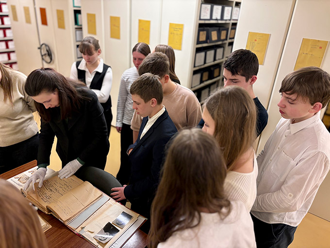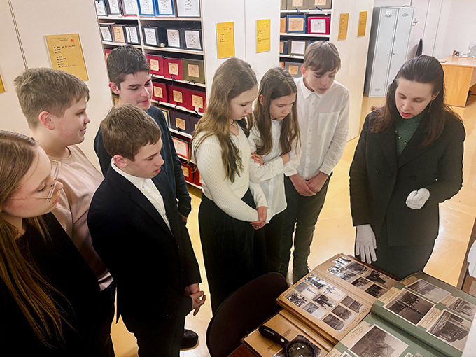 10 лютага 2026 года ў Нацыянальным архіве Рэспублікі Беларусь (далей – НАРБ) у рамках правядзення агульнарэспубліканскай акцыі «Архівы – школе» і акцыі «Юны архівіст» адбылася экскурсія для навучэнцаў ДУА «Гімназія №9 г.Мінска імя Д.М.Манкевіча».
