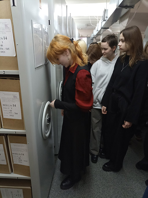 | 4. У адным з архівасховішчаў падчас экскурсіі па архіве |