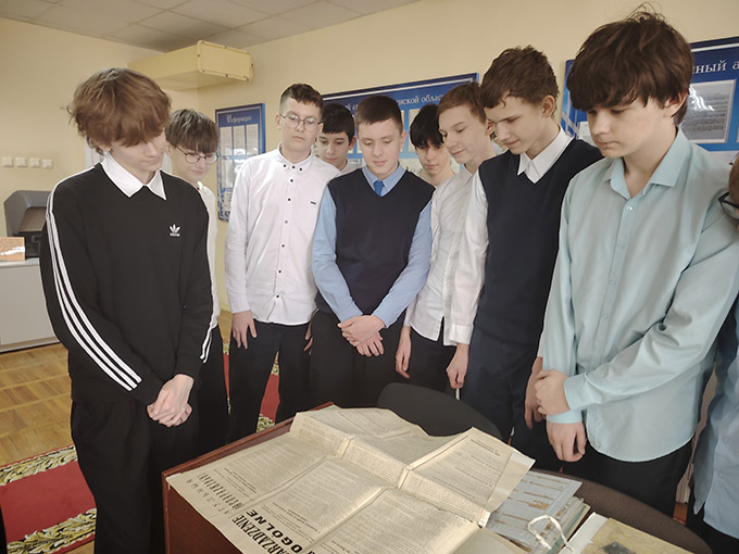 | 1. Навучэнцы ДУА «Сярэдняя школа №12 імя В.У.Бабко г.Гродна» падчас наведвання чытальнай залы архіва |