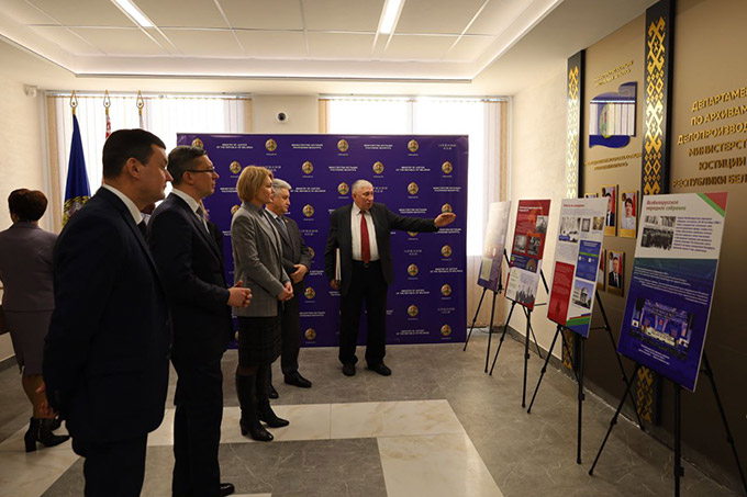 З дакументальнай выставай азнаёміліся Намеснік Кіраўніка Адміністрацыі Прэзідэнта Рэспублікі Беларусь В.І.Чупрыс, Намеснік Старшыні Палаты прадстаўнікоў Нацыянальнага сходу Рэспублікі Беларусь В.Д.Іпатаў, Міністр юстыцыі Рэспублікі Беларусь Я.І.Каваленка.