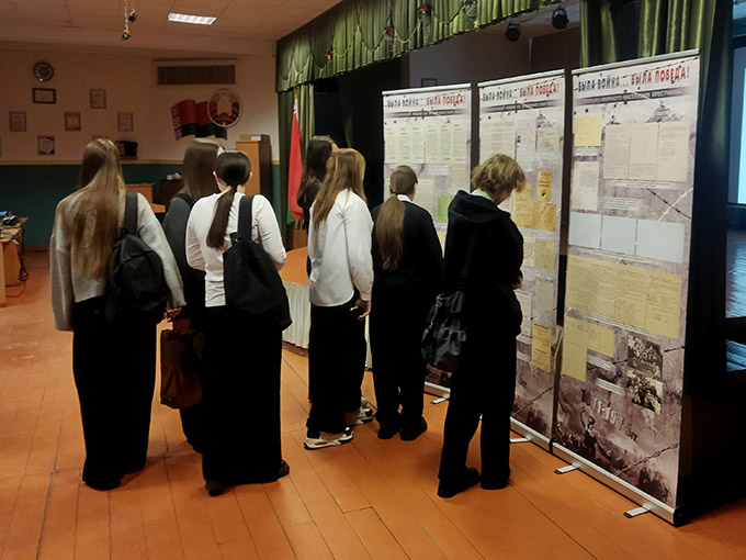 | 4. Школьнікі знаёмяцца з выстаўкай архіўных дакументаў «Была вайна… Была перамога!» |