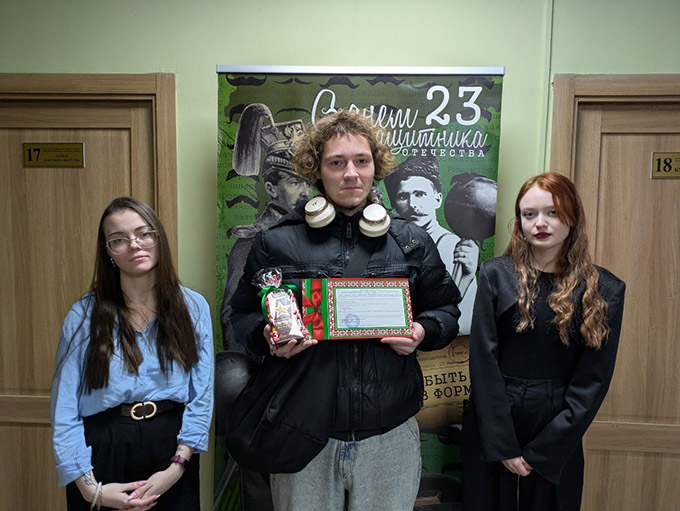 Святочная раніца 23 лютага ў Нацыянальным гістарычным архіве Беларусі пачалася з яркага сюрпрызу. З самай раніцы ў фае першага паверха панавала атмасфера ўрачыстасці і радасці: жаночая палова калектыву падрыхтавала для сваіх калег-мужчын незвычайную сустрэчу.