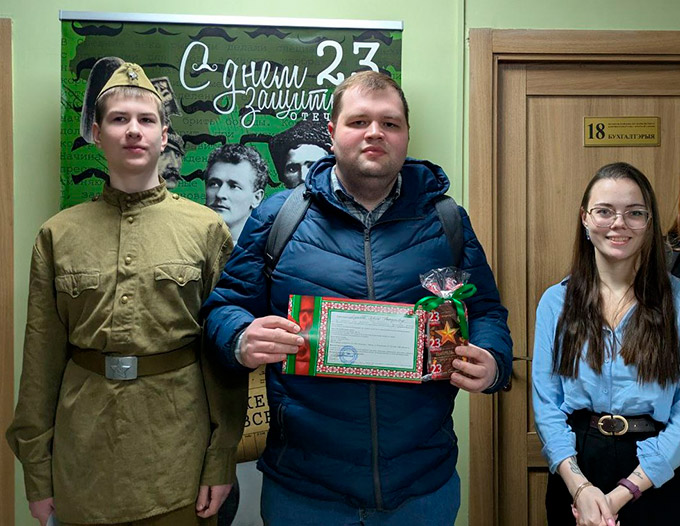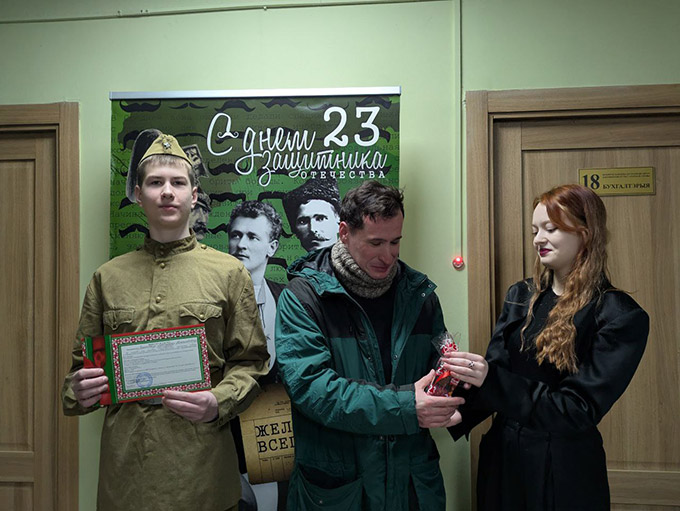 Кожнага мужчыну сустракалі ўсмешкамі і добрымі пажаданнямі. Апроч традыцыйных цёплых слоў, мужчынам уручалі смачныя наборы для падтрымання баявога духу, а таксама жартоўныя, але па-армейску строгія павесткі, якія прадпісвалі неадкладна з’явіцца на святочныя мерапрыемствы. А каб сагрэцца ў лютаўскую раніцу, кожнаму прапаноўвалі гарачую салодкую гарбату з пачастункамі. Такі крэатыўны падыход з першых хвілін задаў выдатны настрой на ўвесь працоўны дзень.
