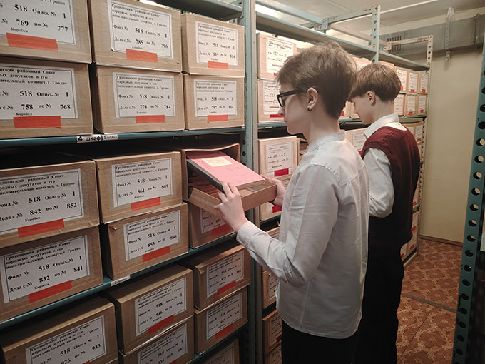 У завяршэнні ўрокаў школьнікі наведалі архівасховішча, дзе даведаліся аб умовах захоўвання, складзе і змесце дакументаў, а таксама наведалі аддзеле аблічбоўвання і рэстаўрацыі дакументаў.