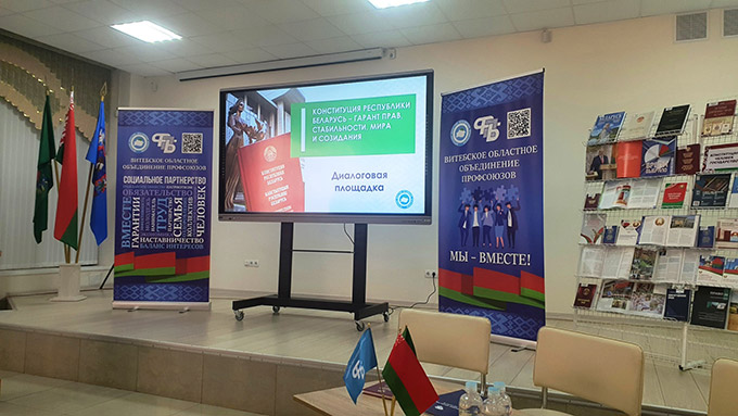 12 сакавіка 2026 года напярэдадні Дня канстытуцыі Віцебскім абласным аб’яднаннем прафсаюзаў арганізавана дыялогавая пляцоўка «Канстытуцыя Рэспублікі Беларусь – гарант правоў, стабільнасці міру і стварэння».