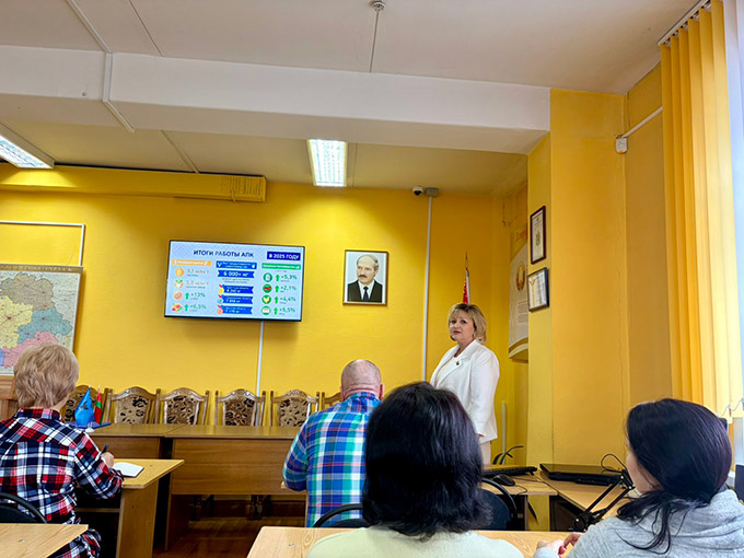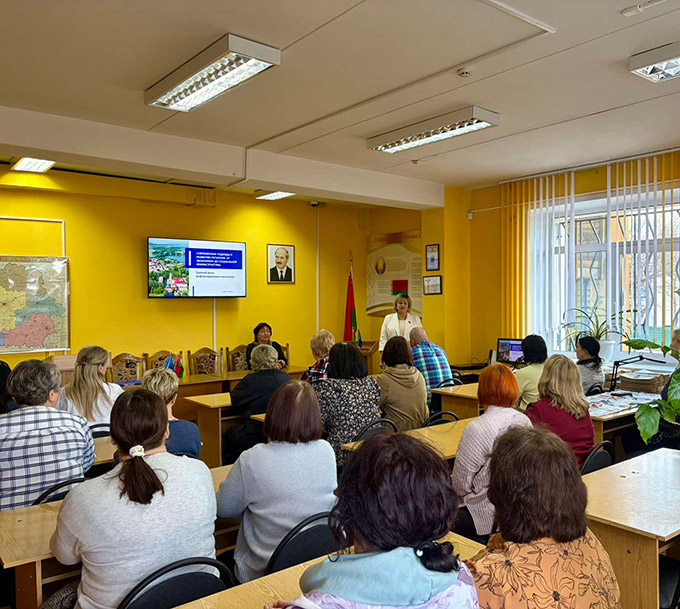 А.М.Кавалькова прадставіла калектыву інфармацыю аб сучасных падыходах да развіцця рэгіёнаў нашай краіны: ад эканомікі да сацыяльнай інфраструктуры, азнаёміла супрацоўнікаў архіва з вынікамі мінулай пяцігодкі, мэтамі, даляглядамі і прыярытэтамі на 1926-1930 гг., а таксама зменамі ў заканадаўстве Рэспублікі Беларусь.