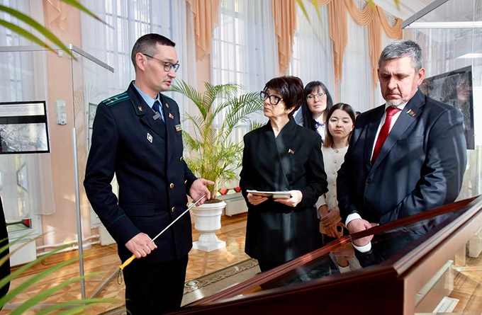 Завяршылася мерапрыемства экскурсіяй па выставе, якую правялі загадчык аддзела археалогіі і аховы гісторыка-культурнай спадчыны музея Гомельскага палацава-паркавага ансамбля Юрый Панкоў і пракурор Гомельскага раёна Аляксандр Шынкароў.