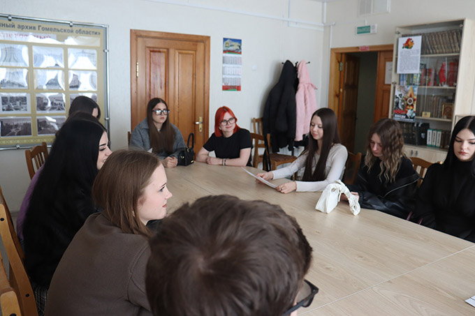 23 сакавіка 2026 г. у Дзяржаўным архіве Гомельскай вобласці архівіст аддзела справаводства, фарміравання Нацыянальнага архіўнага фонду і архіваў арганізацый Арцем’ева Анастасія правяла лекцыю для студэнтаў першага курса Гомельскага дзяржаўнага ўніверсітэта імя Ф.Скарыны па тэме «Афармленне курсавых і дыпломных работ».