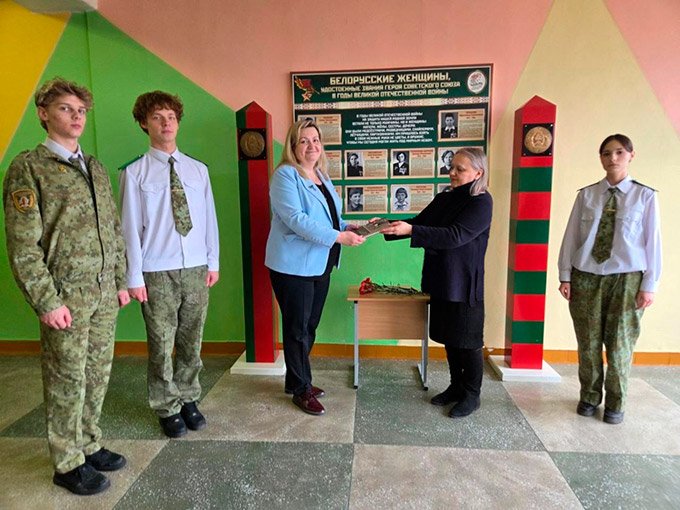 У рамках мерапрыемства І.У.Дарагуш перадала дырэктару школы А.А.Клімковіч навукова-папулярнае выданне «Женщины в партизанском движении Беларуси» з серыі выдавецкага праекта «Партызанский архив».