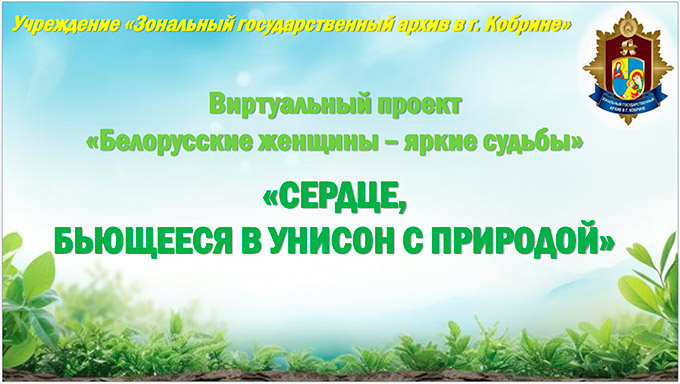 Занальны дзяржаўны архіў у г.Кобрыне прадстаўляе віртуальную выставу «Сэрца, якое б’ецца ва ўнісон з прыродай», падрыхтаваную ў рамках віртуальнага праекта «Беларускія жанчыны – яркія лёсы»