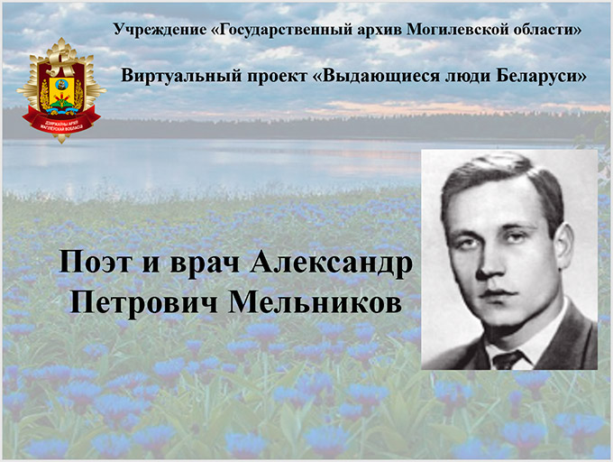 Установа «Дзяржаўны архіў Магілёўскай вобласці» ў рамках праекта «Выбітныя людзі Беларусі» прапануе віртуальную выставу «Паэт і ўрач Аляксандр Пятровіч Мельнікаў».