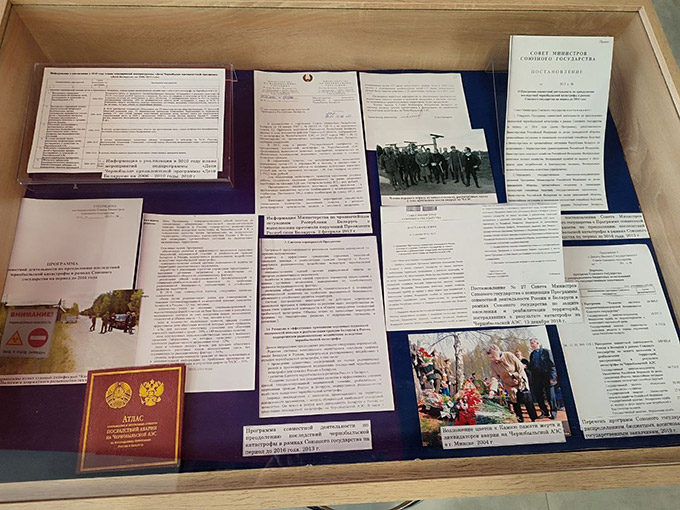 На выставе Нацыянальны архіў прадставіў архіўныя дакументы: пастановы, дакладныя запіскі, даведкі, пратаколы пасяджэнняў і рашэнні Урадавай камісіі па ліквідацыі наступстваў аварыі на ЧАЭС; дакументы аб перасяленні насельніцтва з заражаных тэрыторый, аб стане здароўя пацярпелых людзей, аб аказанні міжнароднай дапамогі ў сувязі з аварыяй. Асаблівую цікавасць таксама выклікаюць дакументы аб адраджэнні пацярпелых тэрыторый.