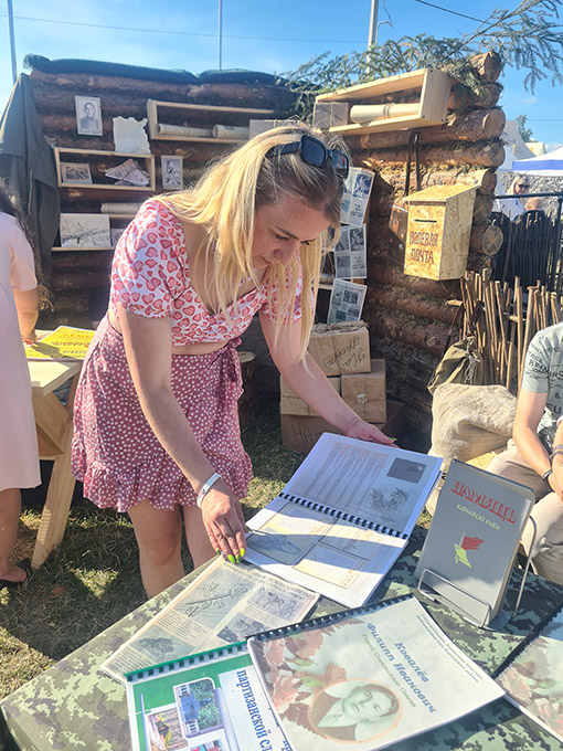 | 6. Шевчик Татьяна возле экспозиции партизанский лагерь Кличевского района, подготовленной Кличевским краеведческим музеем |