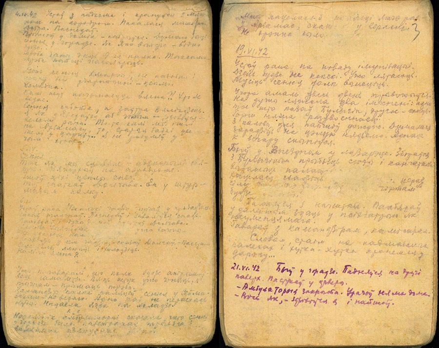 Пётр Волкодаев, Николай Лобан и Антон Алешко — белорусские писатели, участники Великой Отечественной войны. Оригиналы записей, сделанных ими в годы борьбы и мужества, хранятся в их личных фондах архива-музея. Уникальность представленных дневников в том, что они отражают конкретные события, а также человеческие чувства и эмоции, позволяющие ощутить внутренний мир тех, кто приближал Великую Победу, понять их мысли и чаяния.