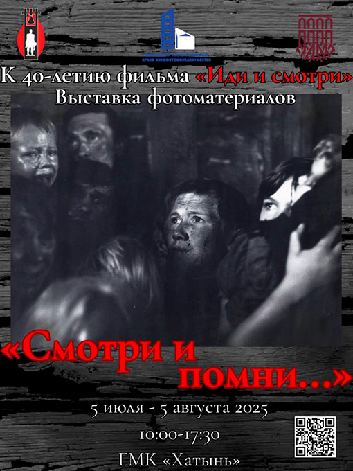 5 июля 2025г. в Государственном мемориальном комплексе «Хатынь» состоялось открытие выставки «Смотри и помни…», приуроченной к 40-летию выхода фильма Элема Климова «Иди и смотри».