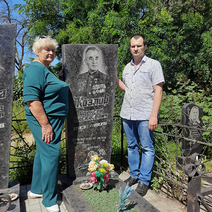 | 4. Ведущий археограф ЗГА в г.Речице С.А. Жарносенко и председатель Лоевской районной организации БООВ Т.А. Башлакова у могилы Героя Советского Союза А.В. Козлова |