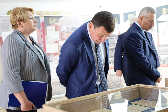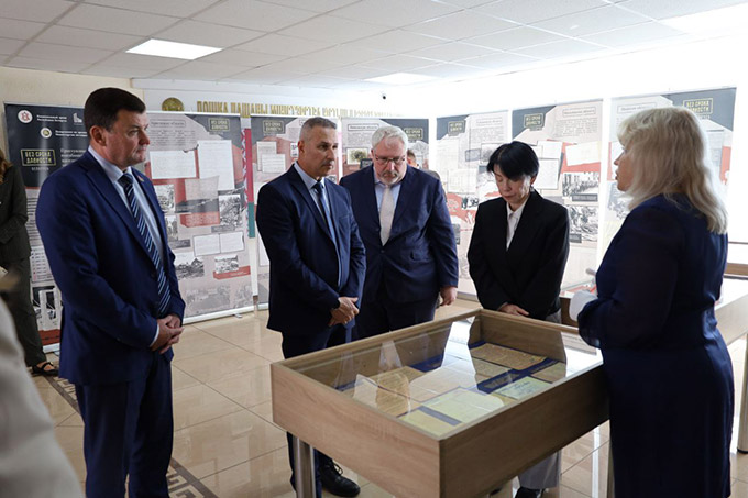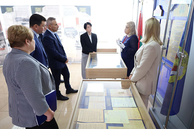 | 6-7. Зав отделом Национального архива Республики Беларусь М.А.Старостенко знакомит с документальной выставкой участников встречи |