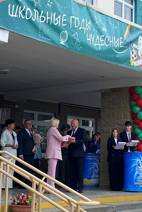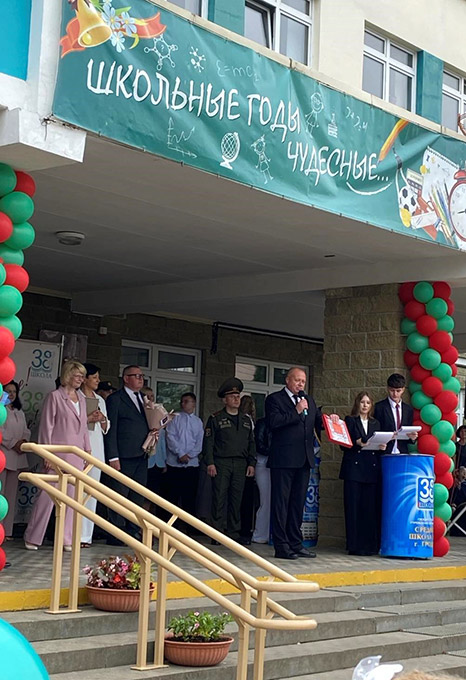 Во время торжественной линейки С.И.Миклашевич поздравил педагогов и учащихся с началом нового учебного года и вручил школе комплект книг, изданных в рамках проекта «Библиотека Союзного государства». В комплект вошли книги, посвященные выдающимся людям и значимым событиям в истории Беларуси и России: «Симеон Полоцкий. Подвижник и просветитель», «Михаил Ломоносов. Везде исследуйте всечасно», «Иван Федоров и Франциск Скорина. Открывая новый мир», «Дмитрий Менделеев и Казимир Семенович. Определившие время», «Космос. Мечта человечества».