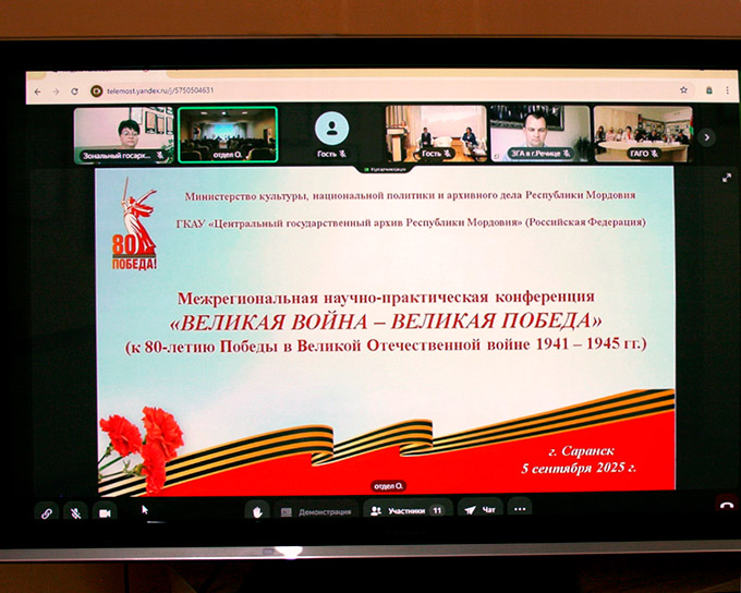 5 сентября 2025 года в г. Саранске прошла межрегиональная научно-практическая конференция «Великая Война-Великая Победа» (к 80-летию Победы в Великой Отечественной войне 1941-1945 гг.), организованная Министерством культуры, национальной политики и архивного дела Республики Мордовия, ГКАУ «Центральный государственный архив Республики Мордовия».