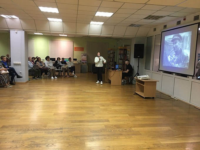 | 1-2. Во время лекции заместителя директора архива Буевич Татьяны об истории освобождения Витебска в июне 1944 года с показом фильма «Освобождение Витебска» (из фондов БГАКФФД), состоявшейся в рамках библионочи «Между вчера и завтра» в Центральной городской библиотеке имени Максима Горького в Витебске |