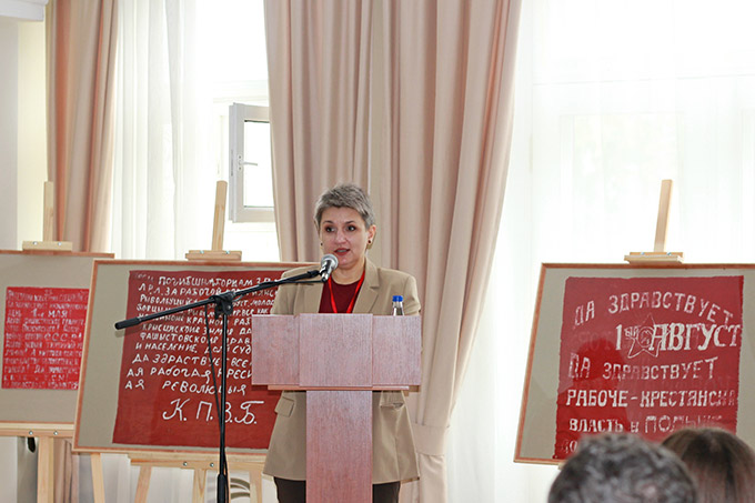 В рамках мероприятия состоялось открытие подготовленной музеем выставки транспарантов Коммунистической партии Западной Белоруссии «Слово – тоже оружие». К слову, представленные экспонаты были переданы музею архивом еще в 1956 году.