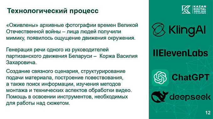 В выступлении были раскрыты результаты реализации проектов с использованием цифровых технологий и искусственного интеллекта в архивной отрасли, а также продемонстрирована презентация, посвященная современным подходам к сохранению документального наследия.