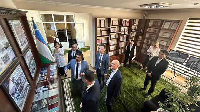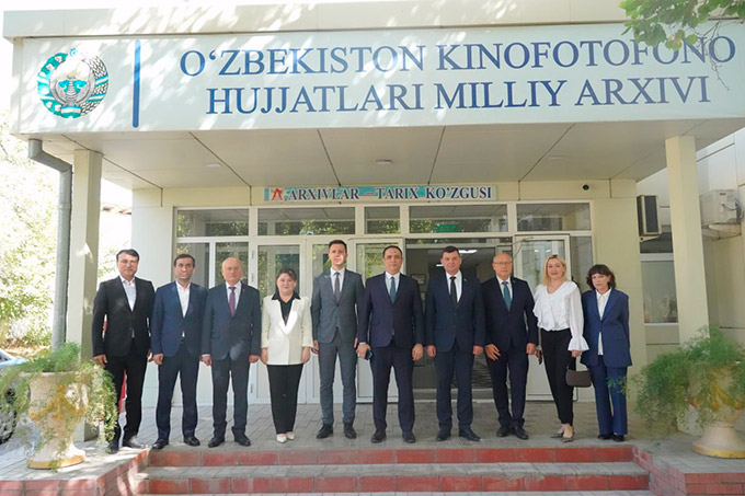 — Национального архива кинофотофонодокументов Узбекистана, где осмотрели условия хранения документальных фильмов и аудиовизуальных материалов, порядок их учёта и использования, а также процессы цифровизации.